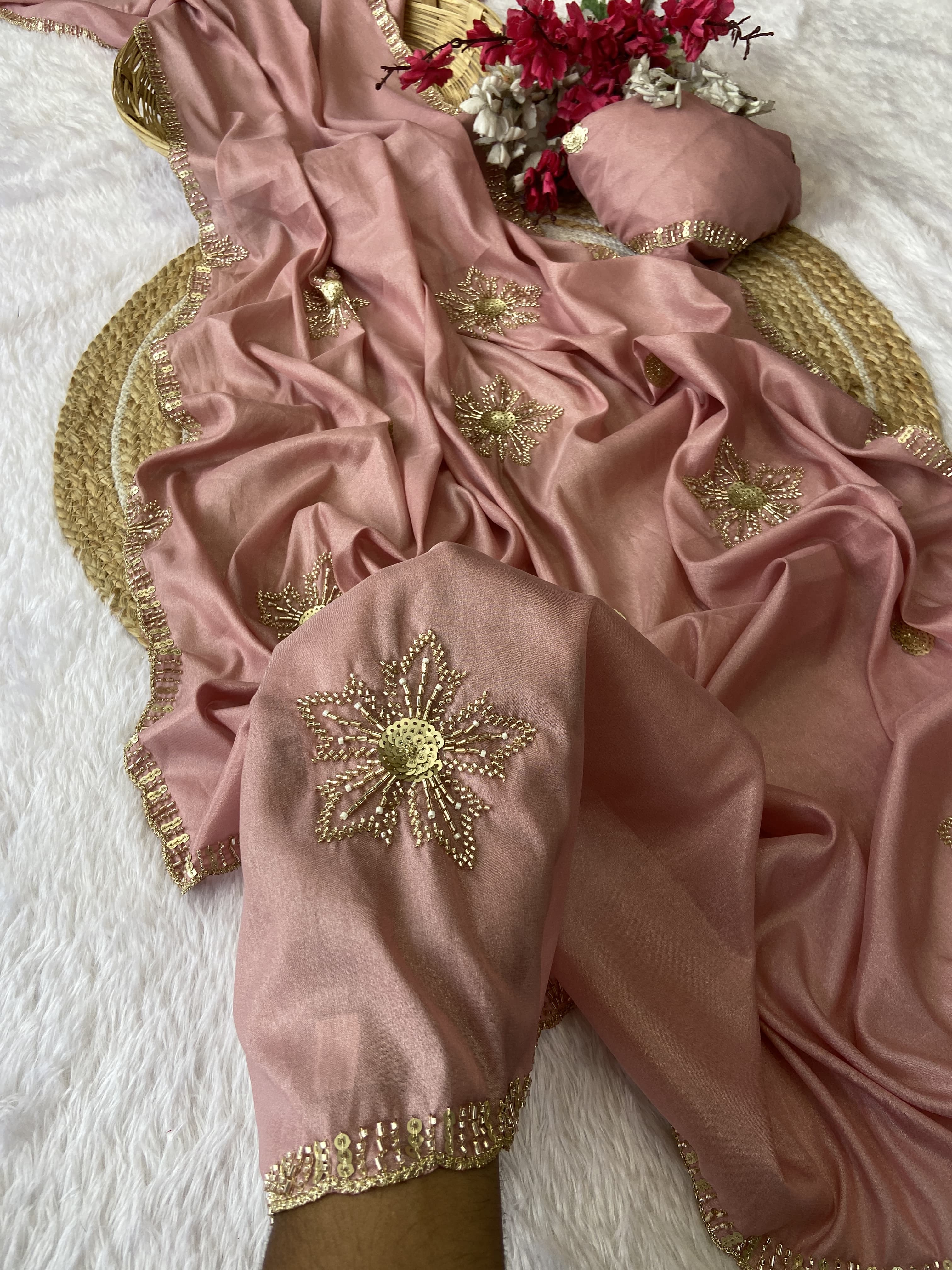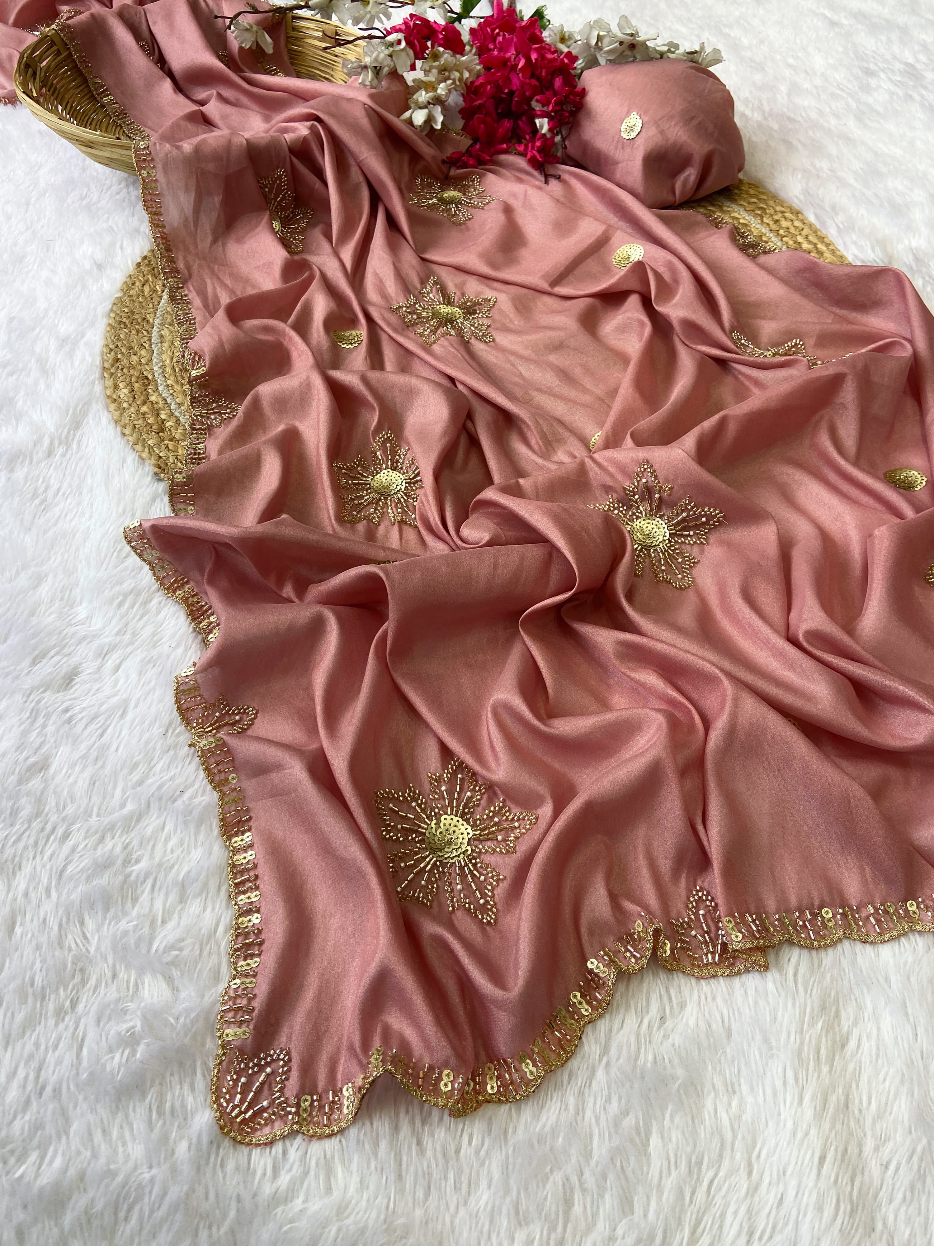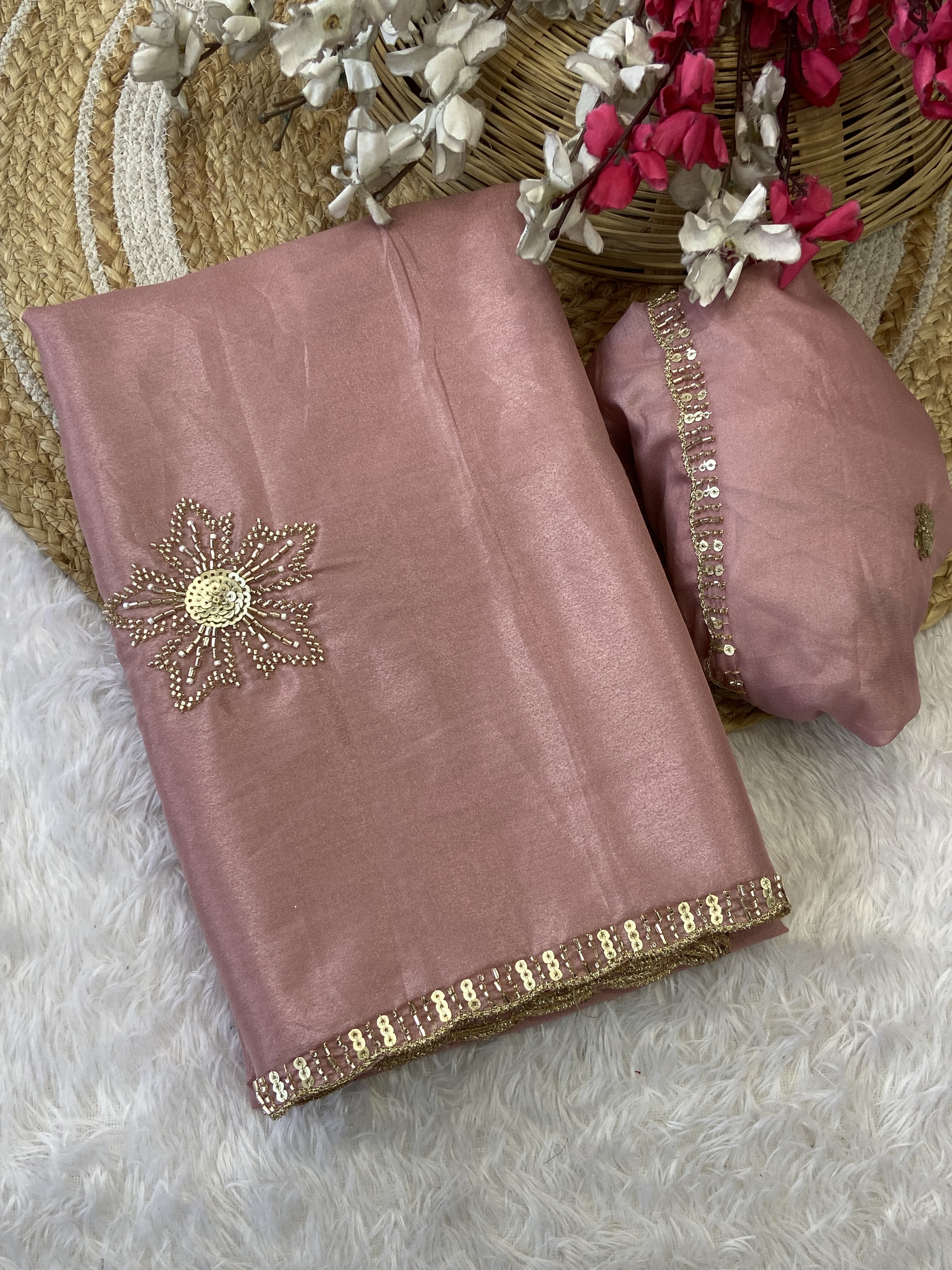 Pink Sequin Embroidered soft silk Beads and Stone saree