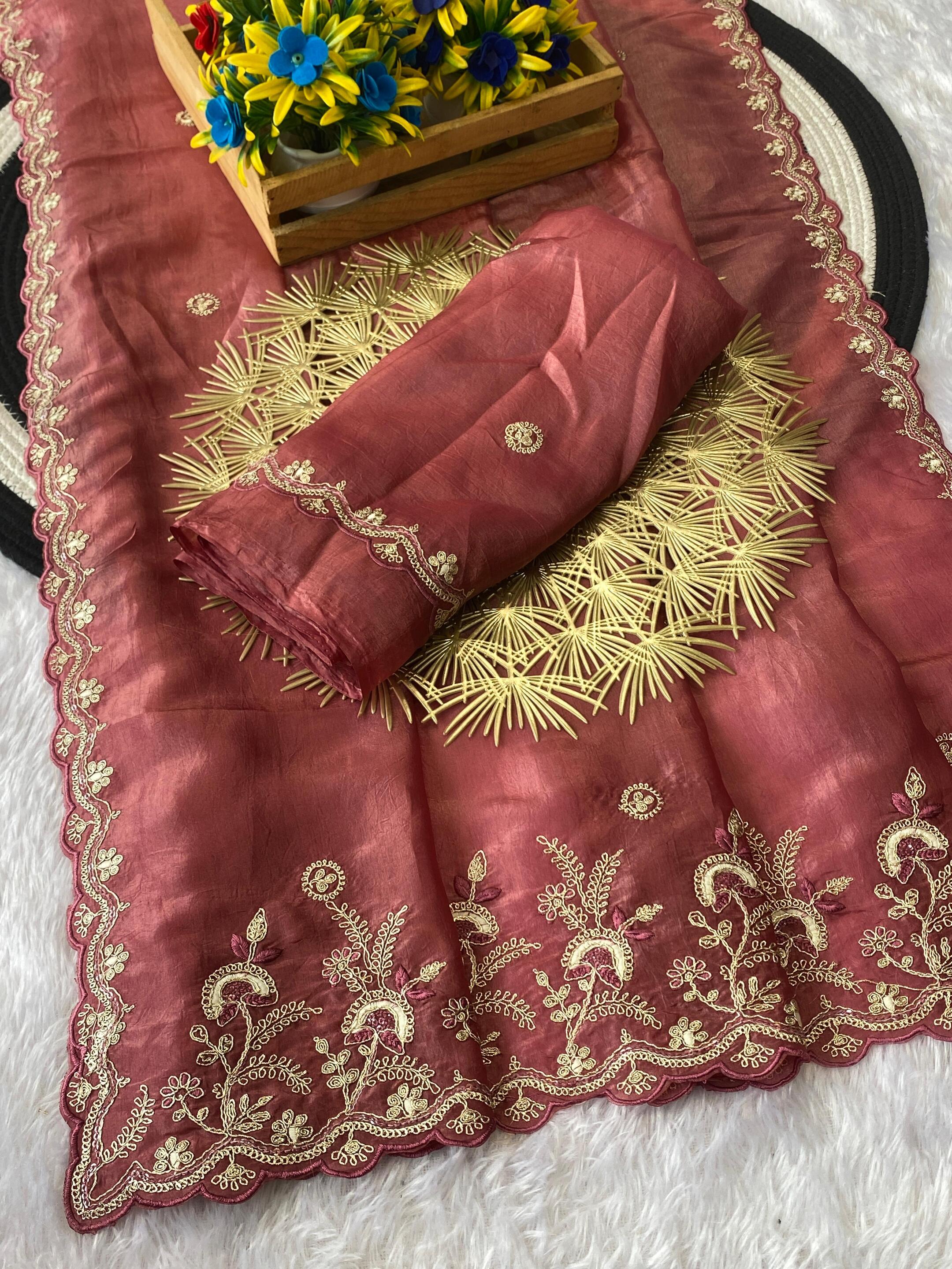 Maroon Embroidered Gold Crush silk saree
