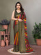 Dark Green Striped Embellished Foil Printed Georgette silk saree