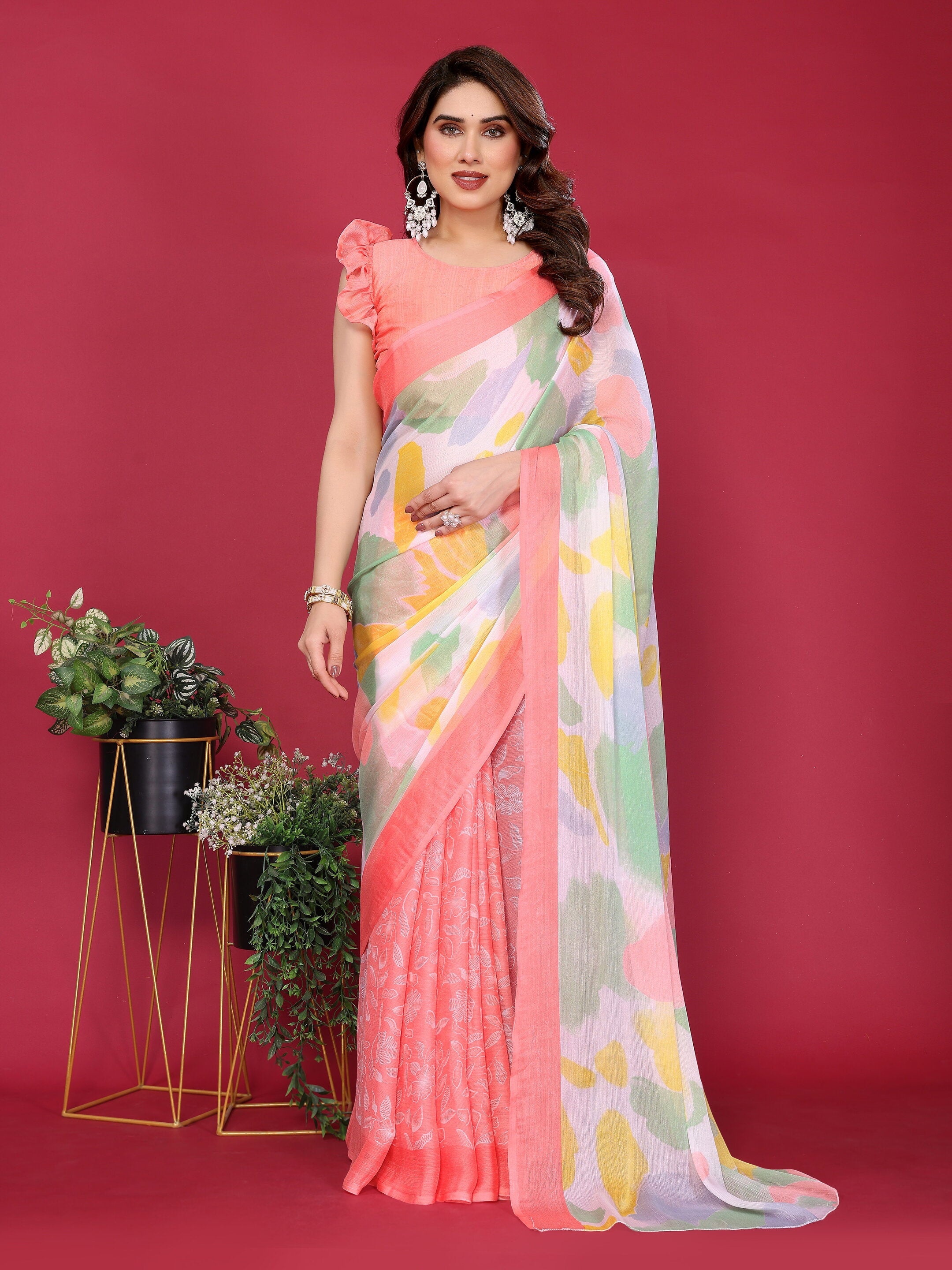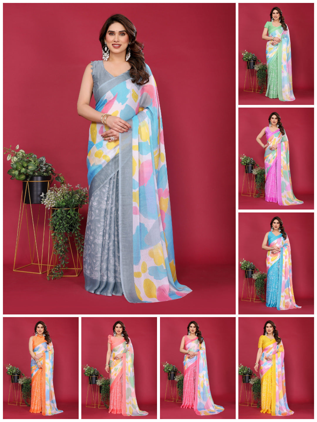 Deepika Floral Printed Chiffon silk saree (8 Saree Combo-Set)