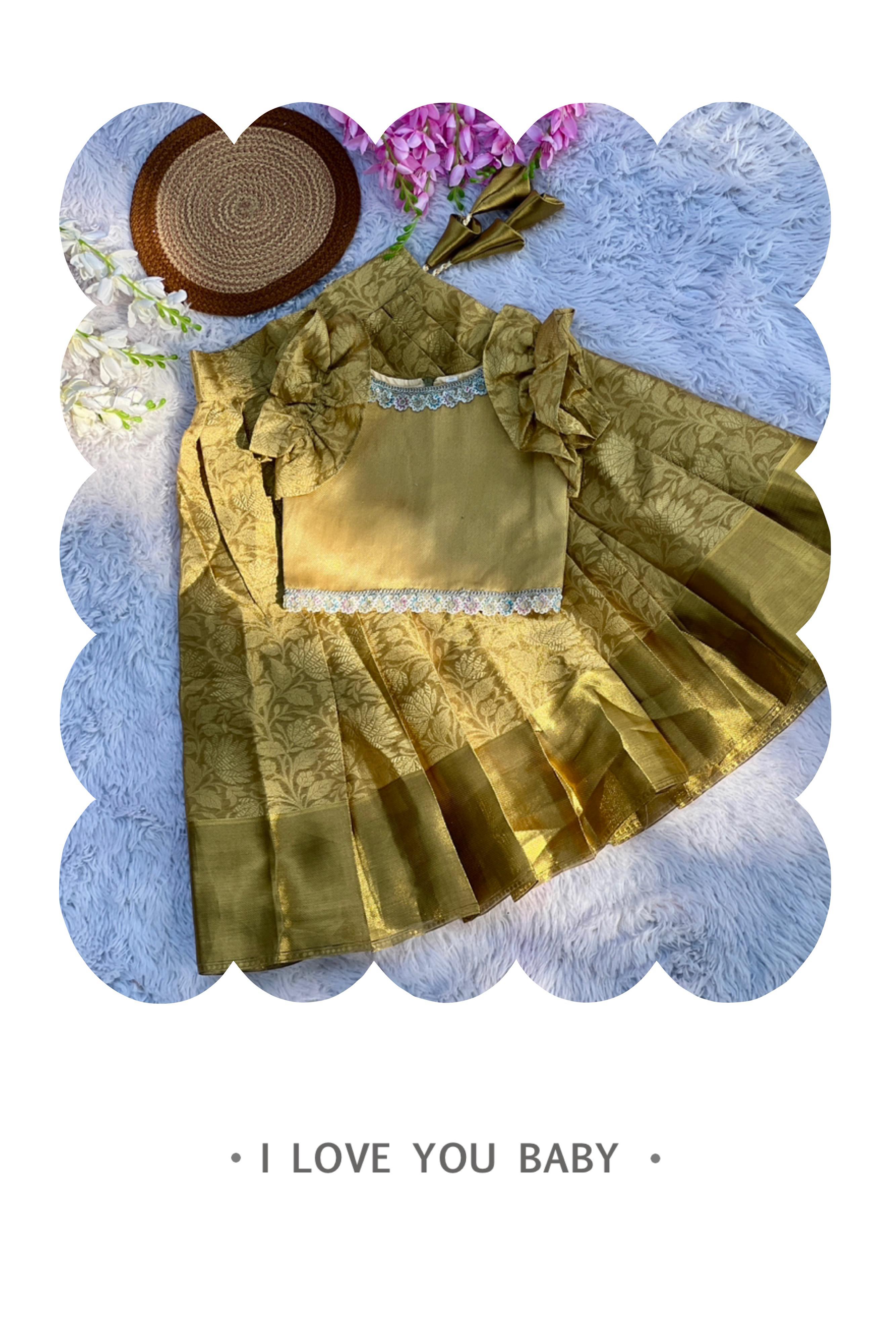 Kid's Gold Kanjivaram silk Flared Lehenga Choli