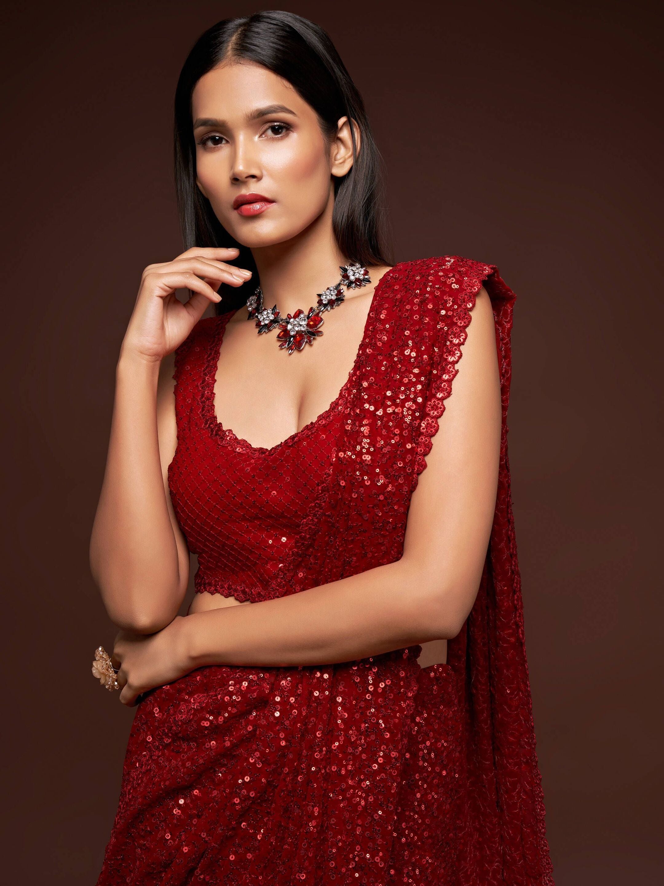 Multicolor Bollywood Embroidered Sequence Work Faux Georgette Saree