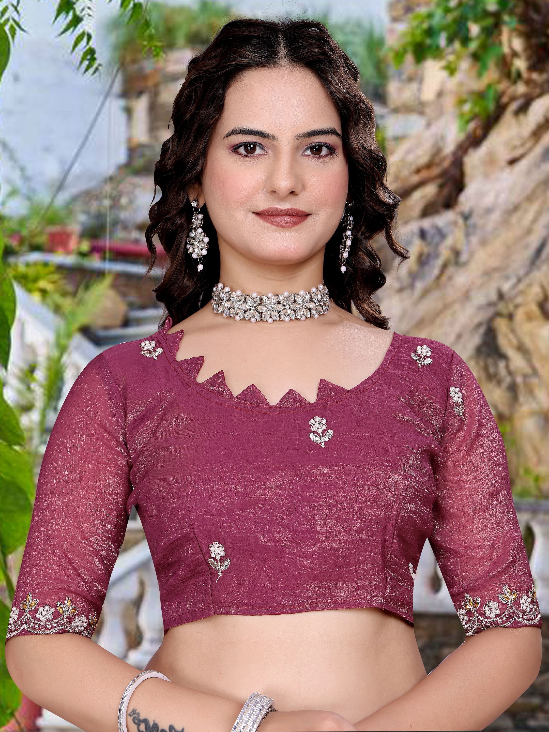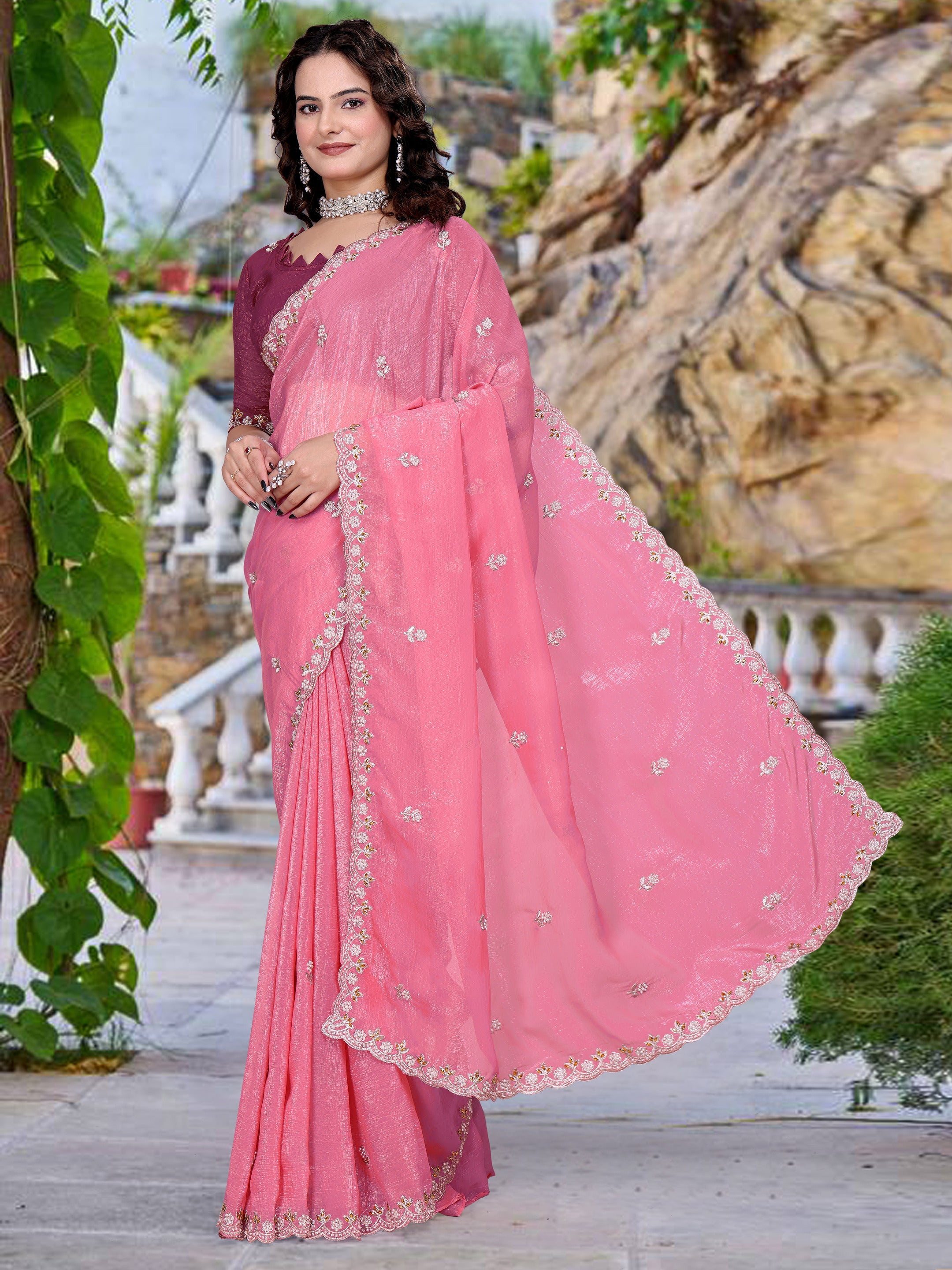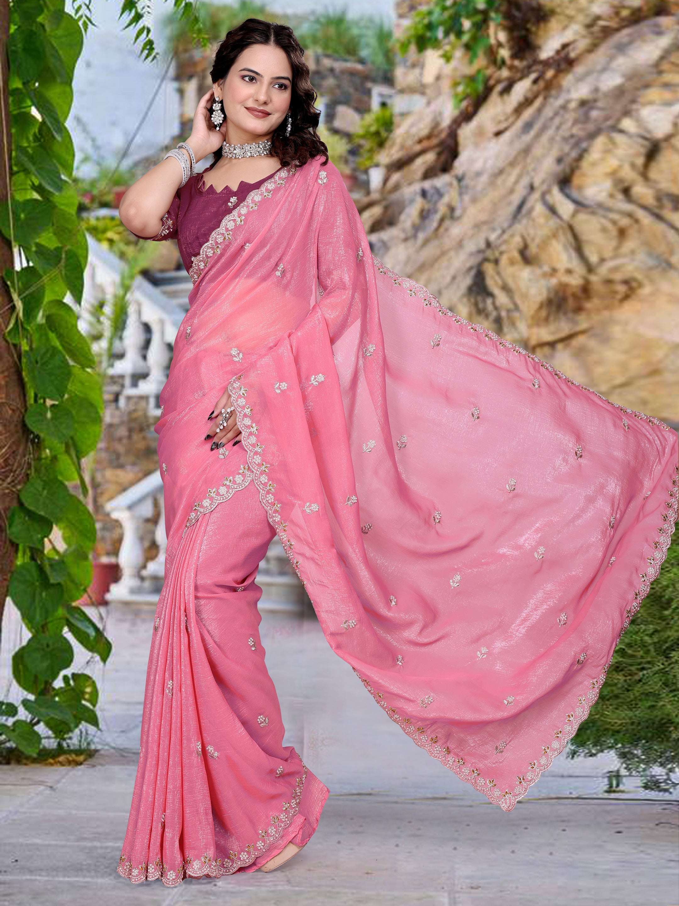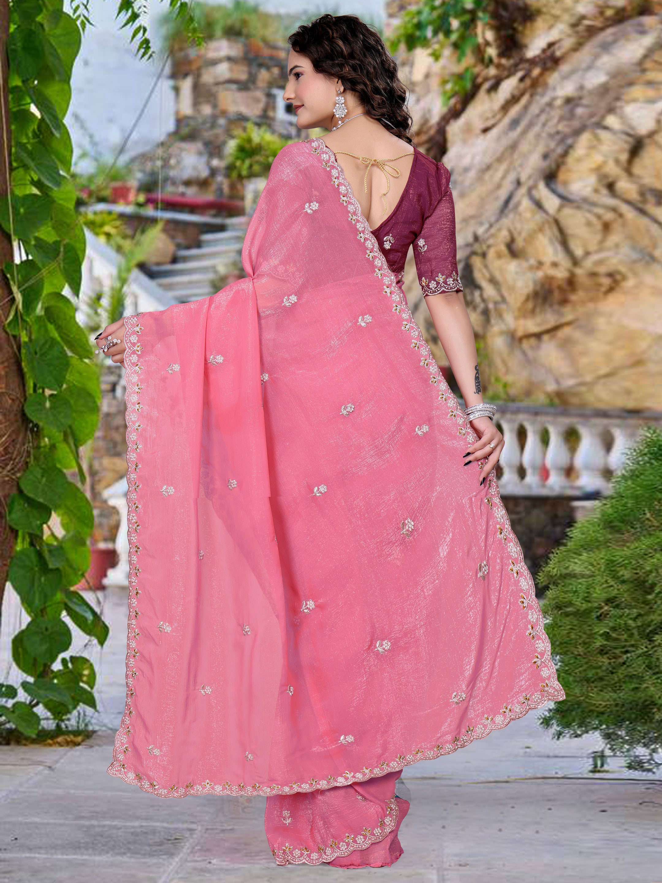 Pink Embroidered Embellished Chiffon silk Beads and Stone saree