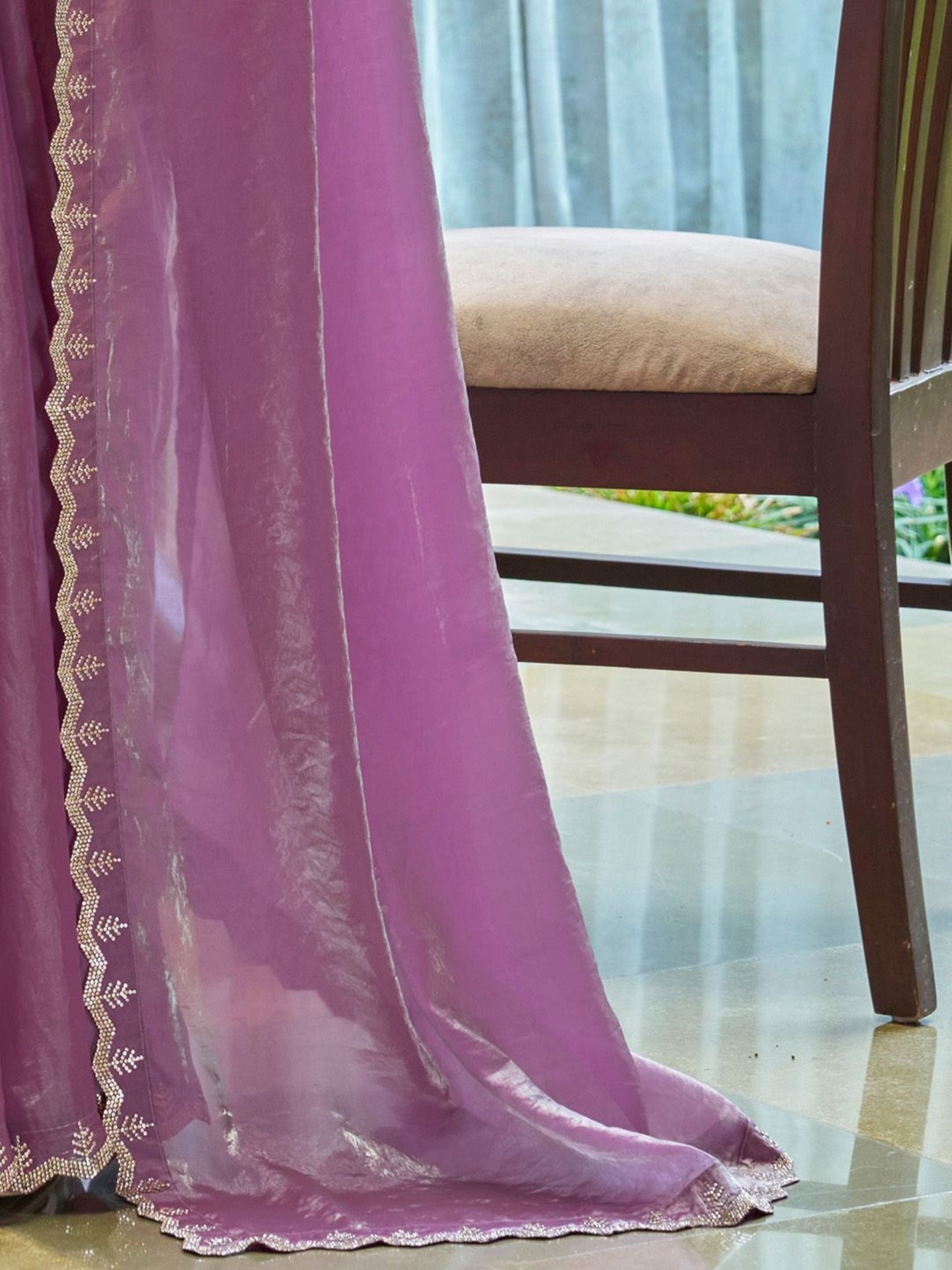 Purple Embellished Swarovski Space silk Beads and Stone work saree