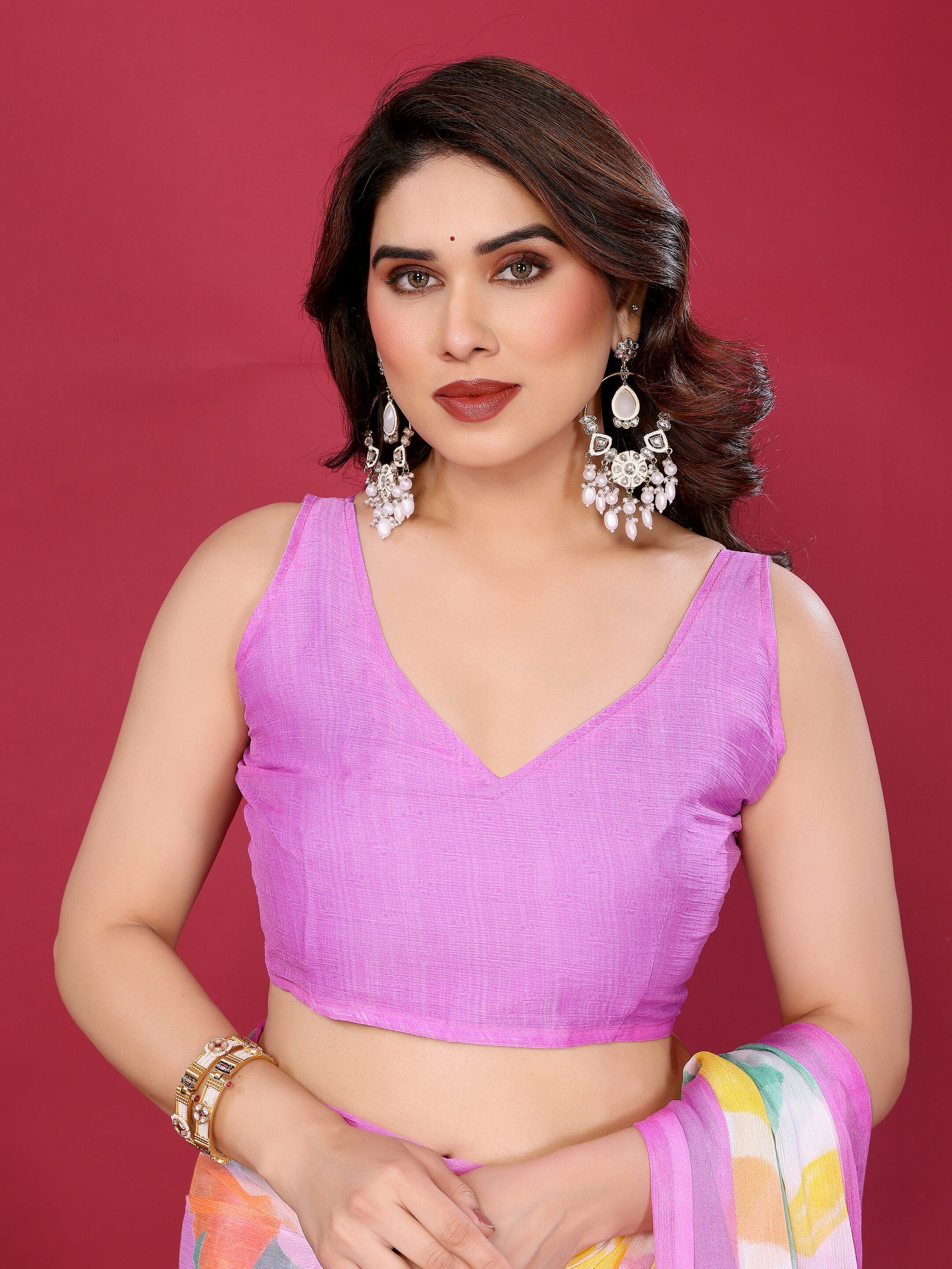 Purple Floral Printed Chiffon silk saree