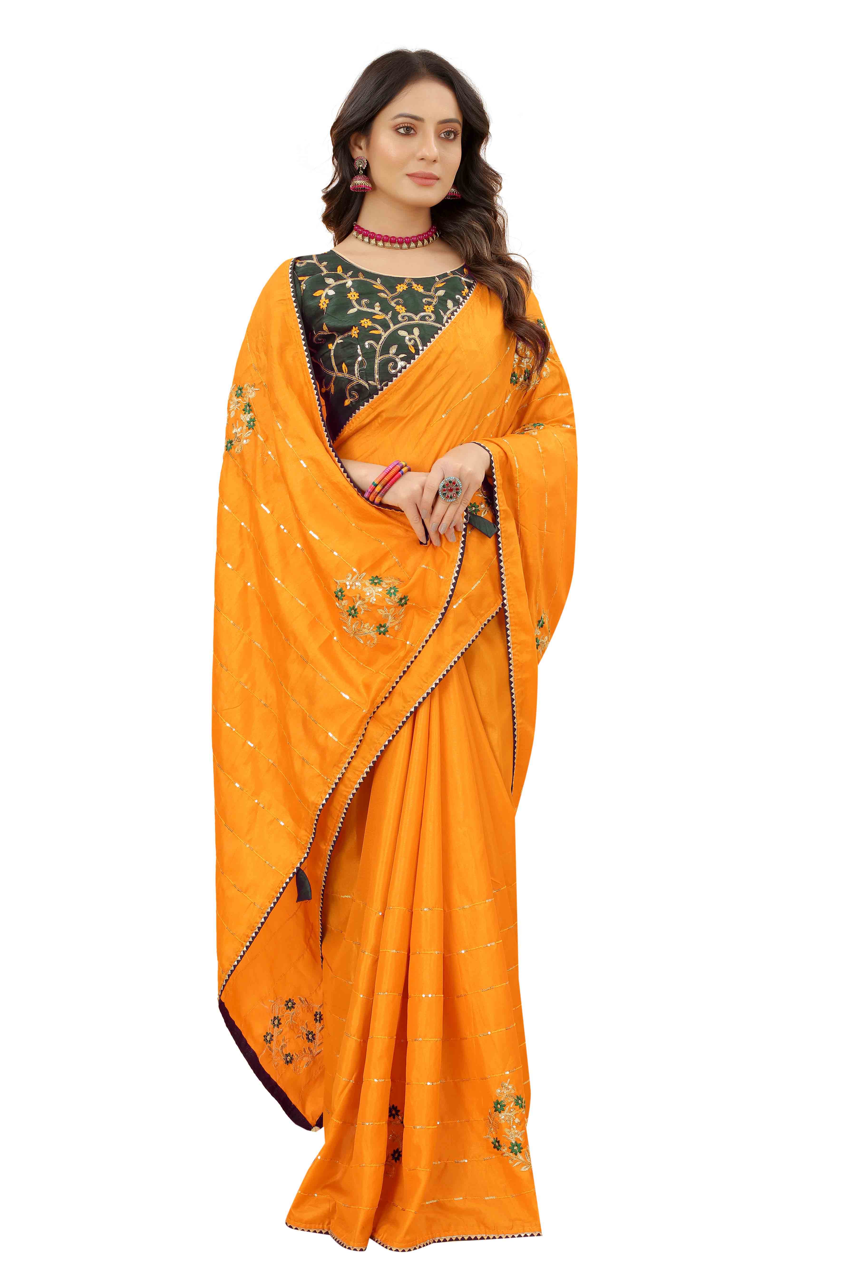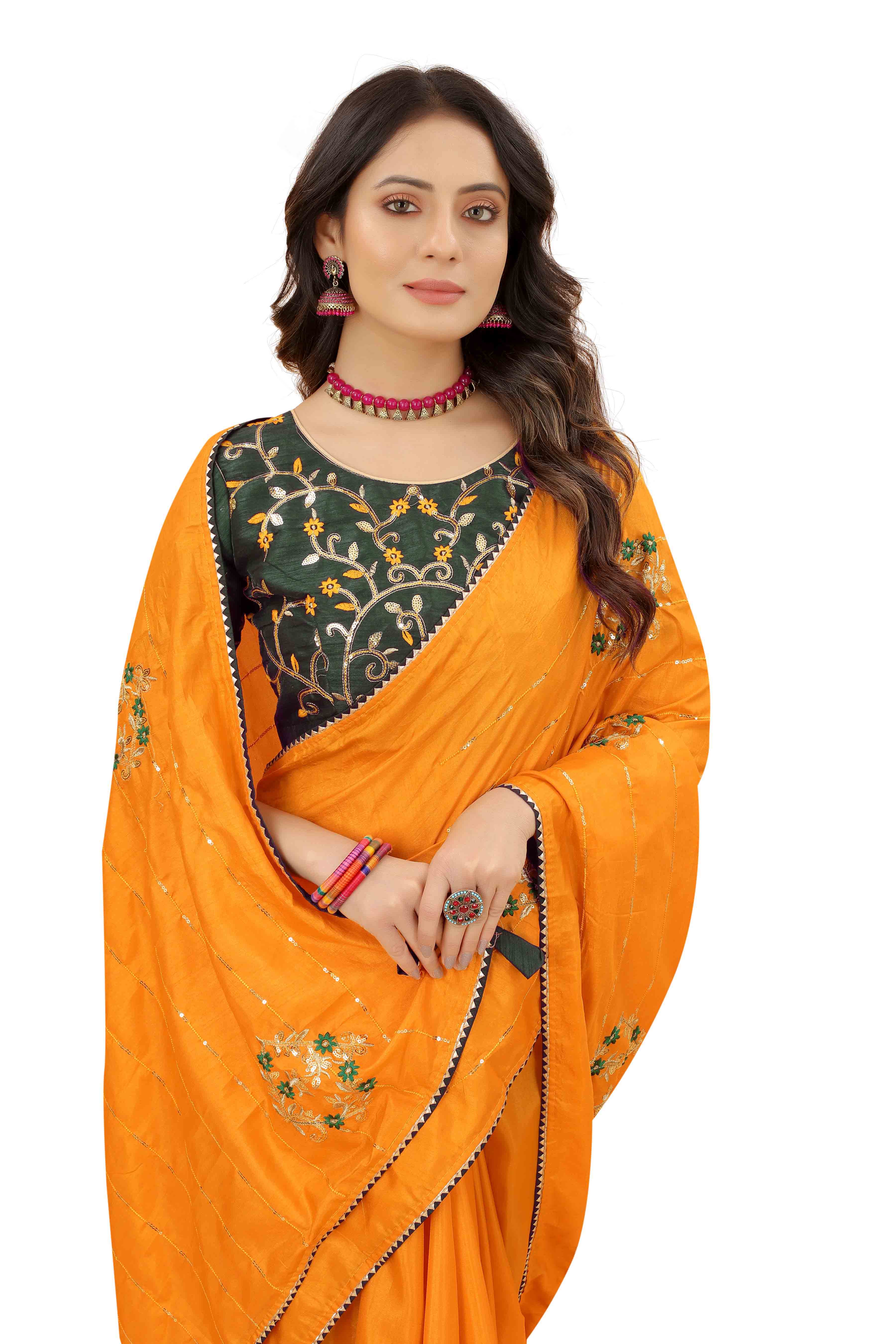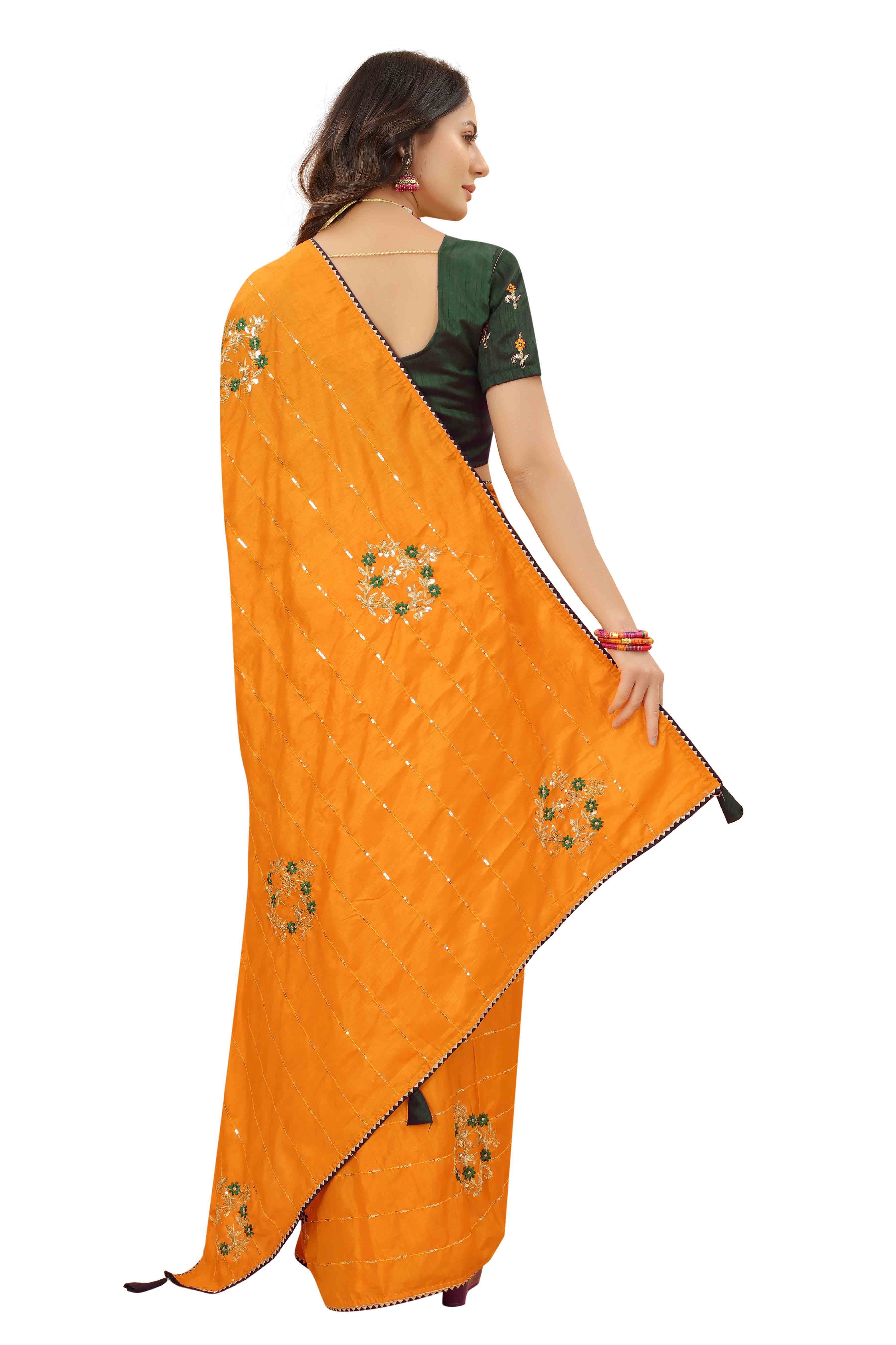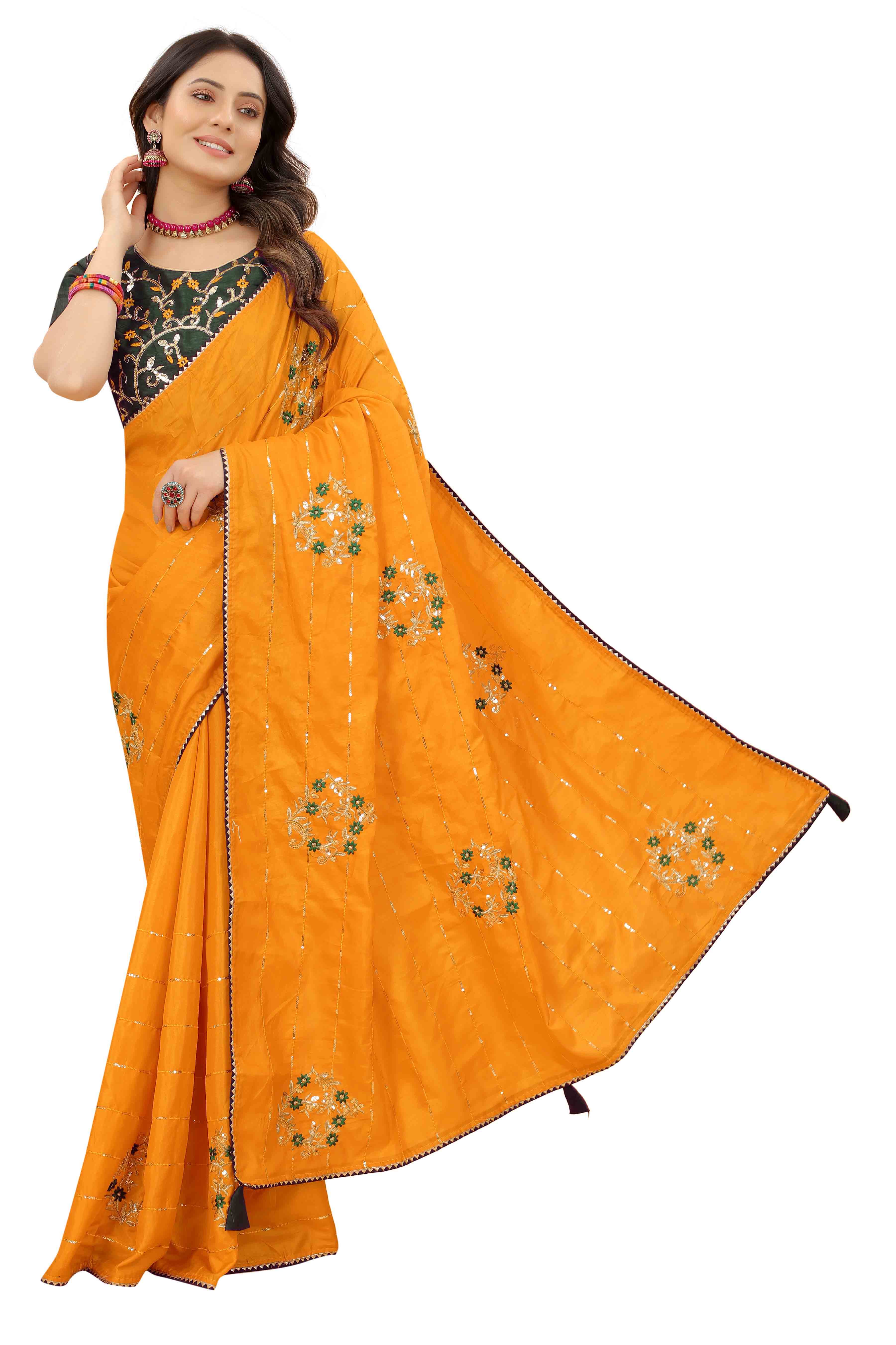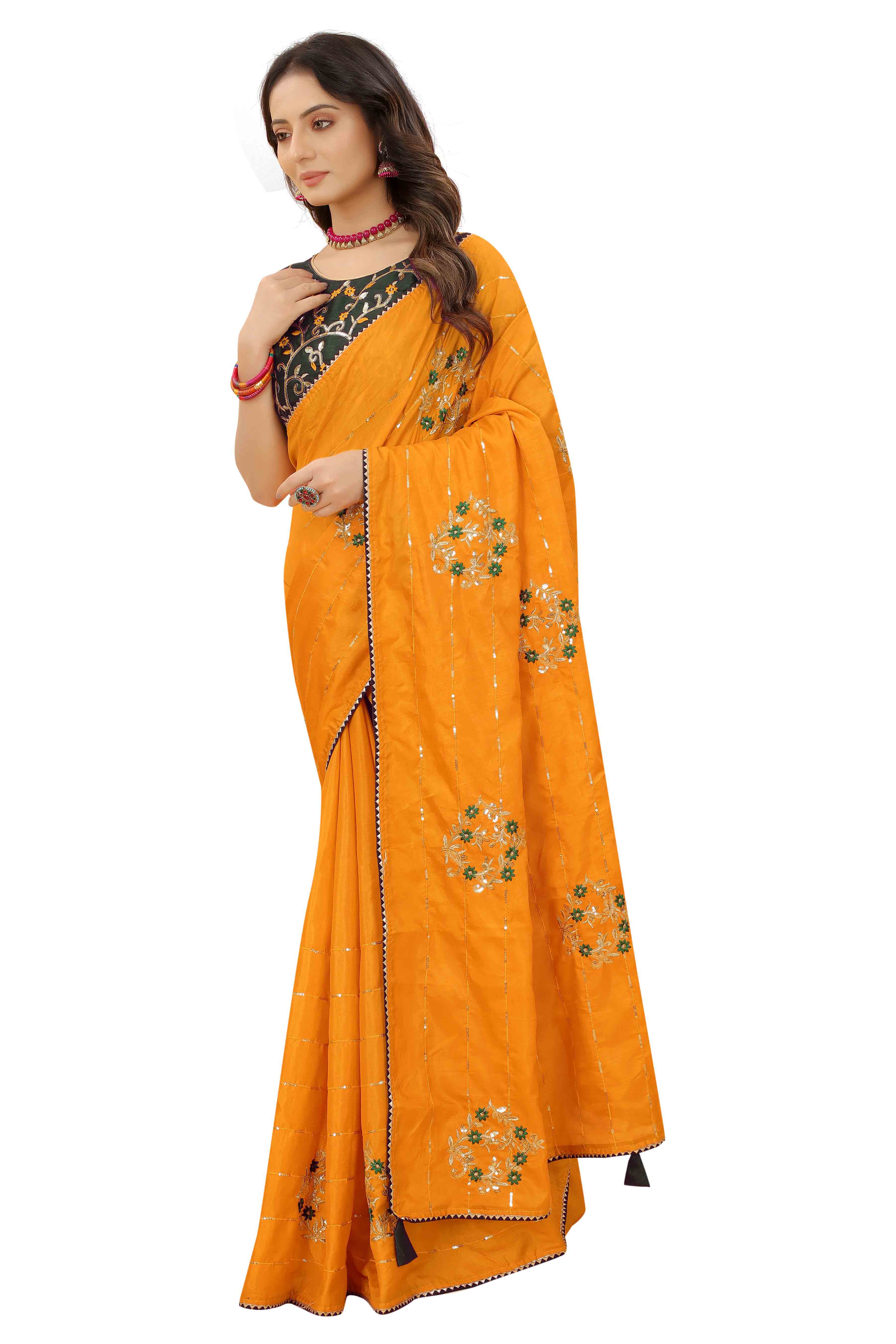 Yellow Embroidery Sequin Silk Saree With Blouse | Sadika